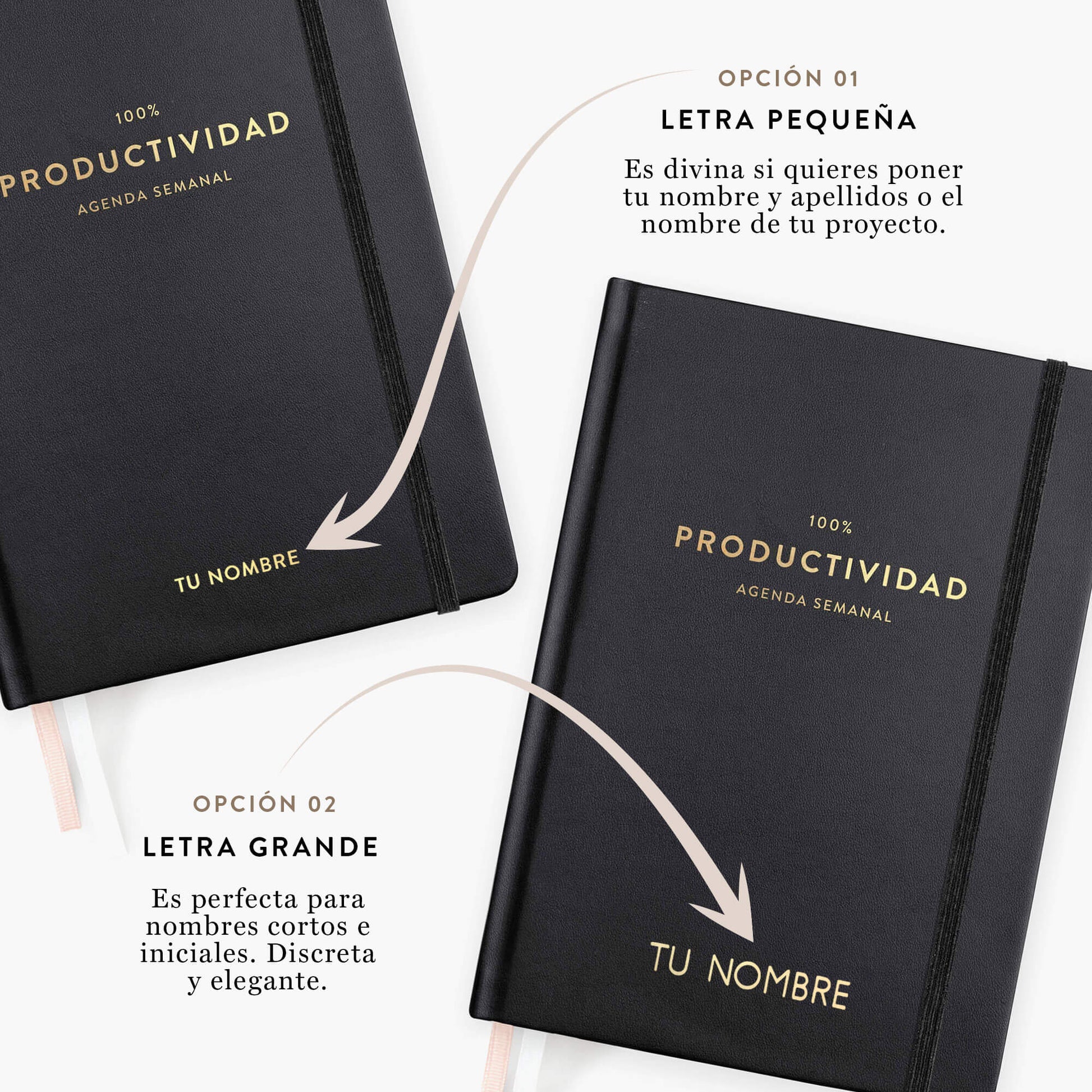 100% Productividad. Agenda semanal. Sin fechas. Negro.