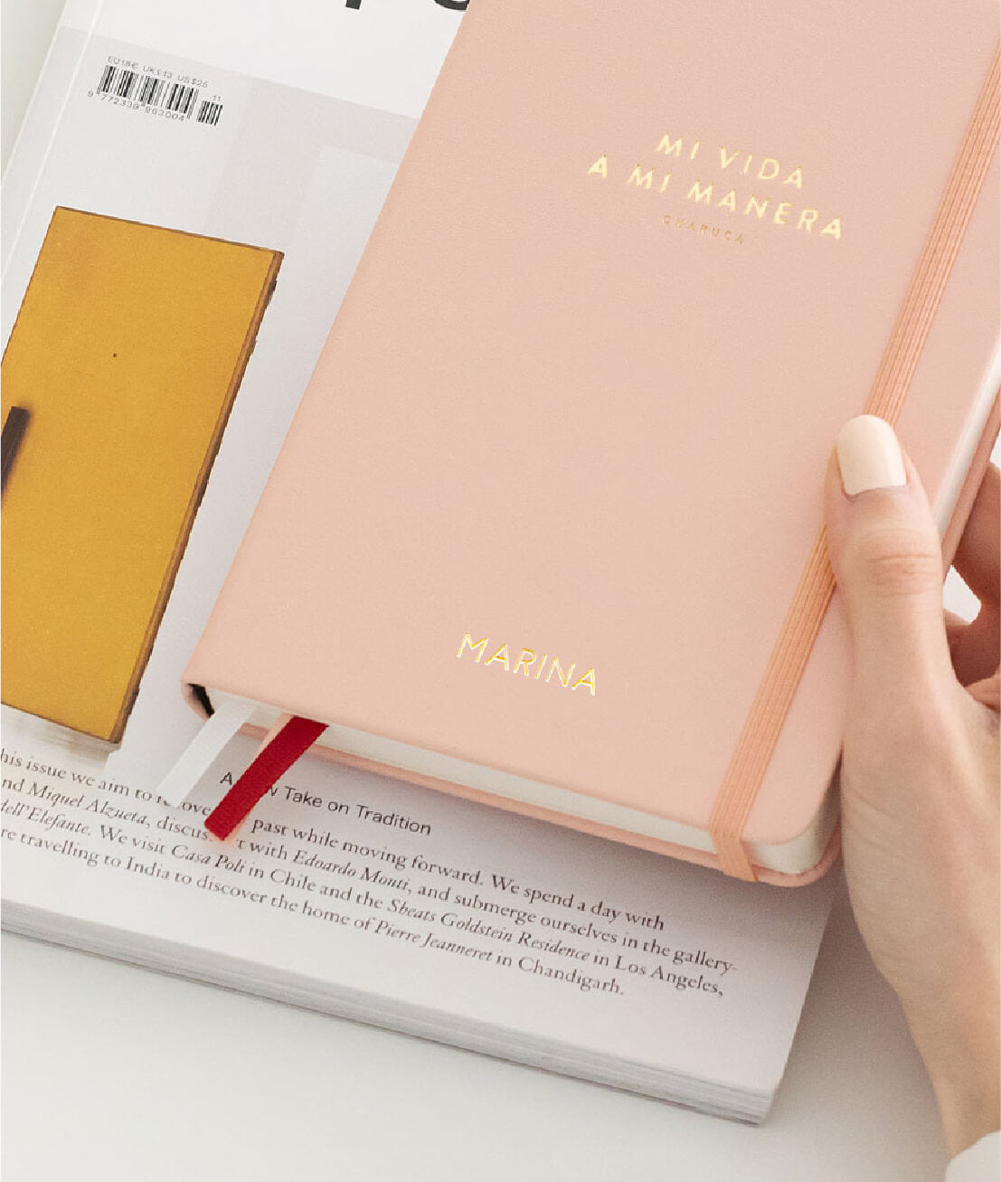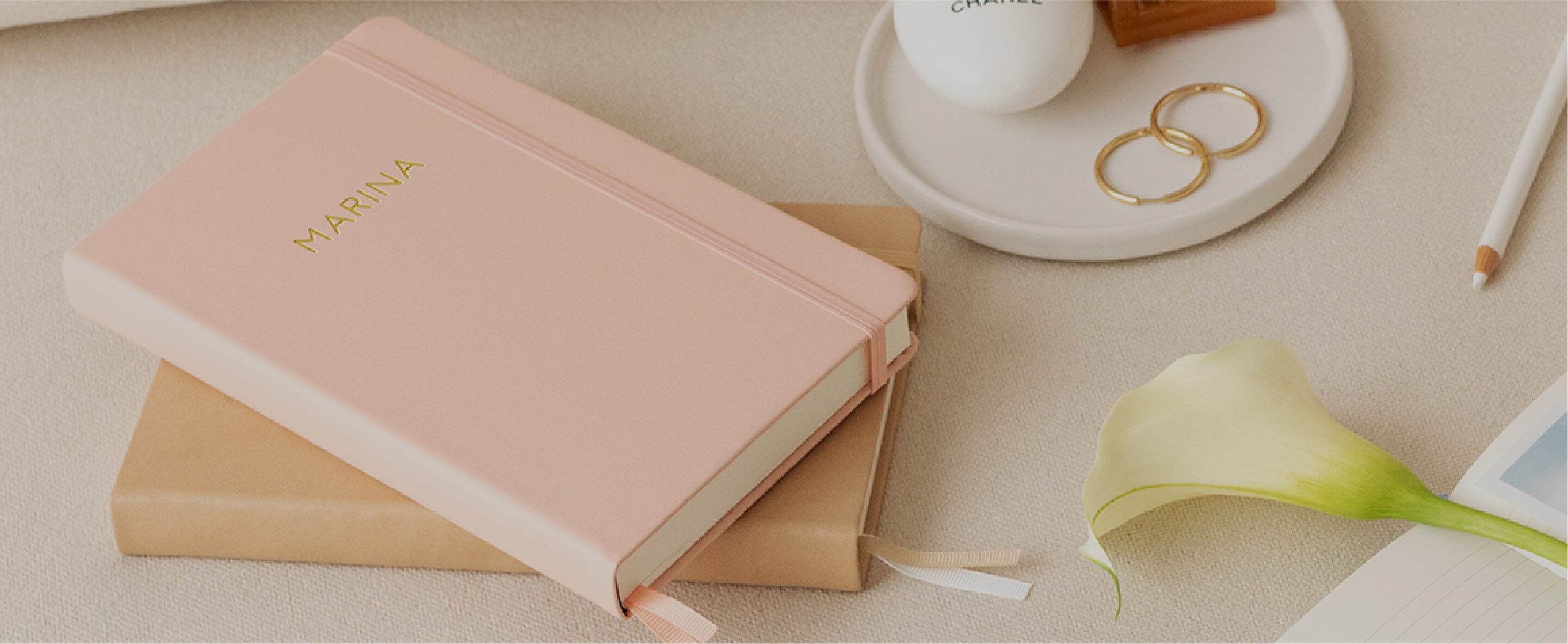 En Charuca tenemos un servicio de personalización artesanal. Escribe tu nombre o tus iniciales con letras doradas en la portada de tu papelería favorita. Puedes elegir entre dos tamaños de letra