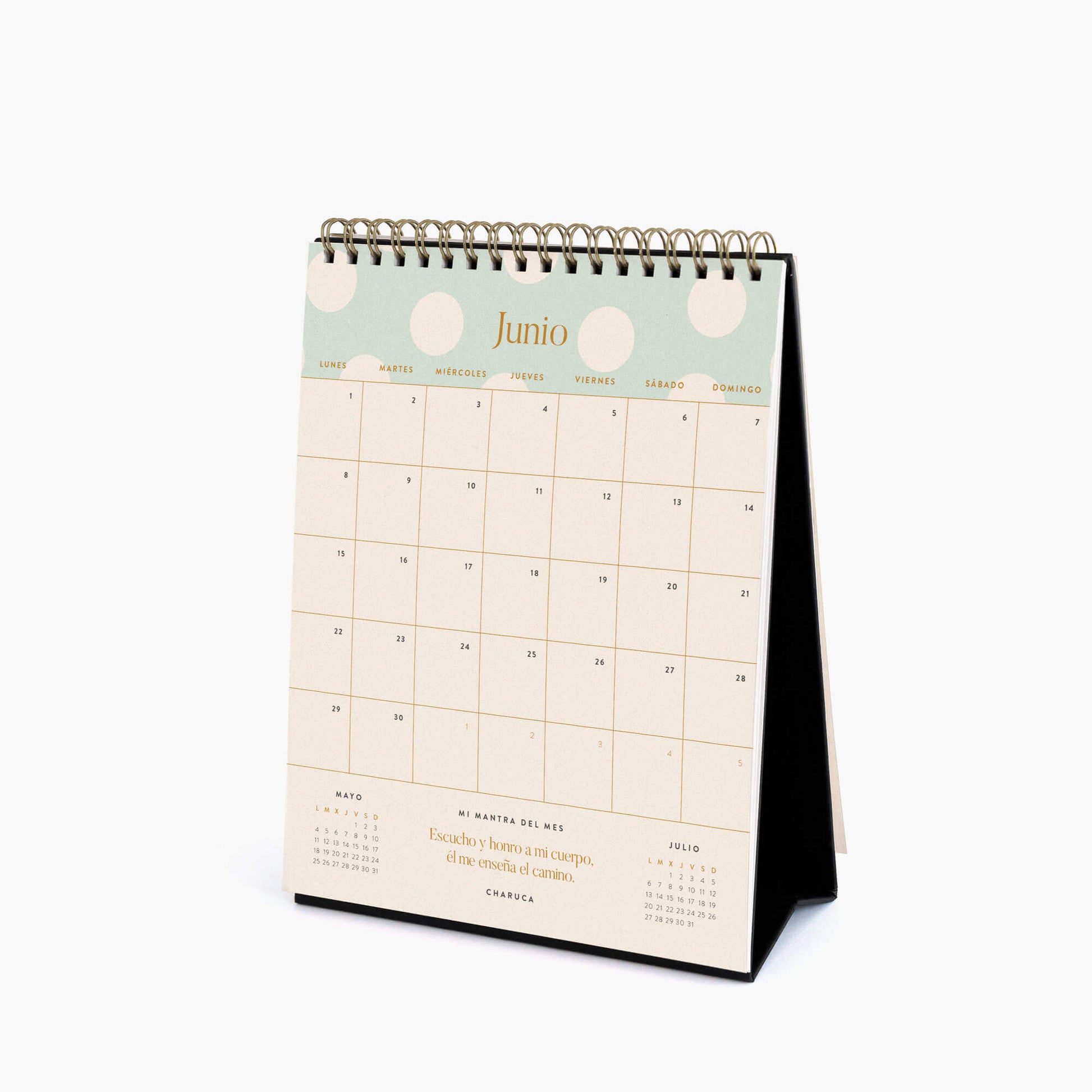 El calendario Charuca 2026, además de tener mucho espacio para que apuntes las citas de tu mes, te propone 12 mantras con los que aprender a quererte, a tratarte como te mereces, a divertirte y a descansar sin remordimiento siempre que lo necesites. Hecho en España con amor y sin prisas.