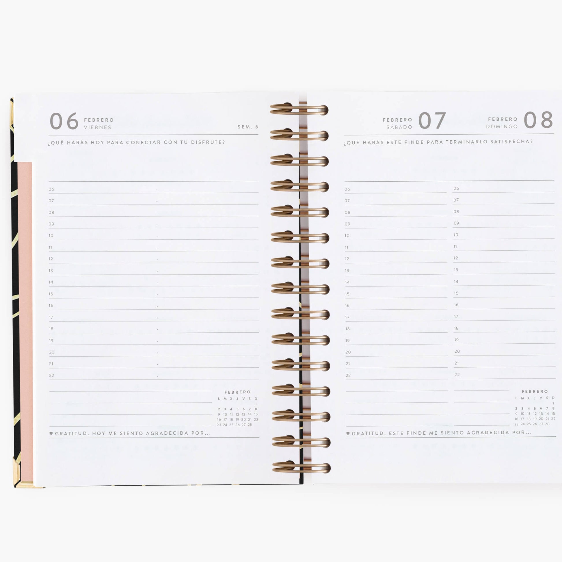 Esta agenda se va a convertir en tu mejor amiga y tu coach, porque te ayuda a organizarte, a mantenerte motivada y trabajar en tus objetivos con foco y constancia. Está hecha en España, con amor y sin prisas.