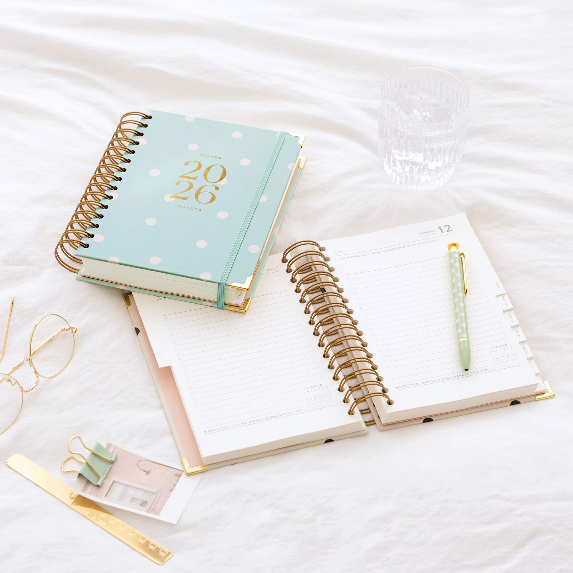 Esta agenda se va a convertir en tu mejor amiga y tu coach, porque te ayuda a organizarte, a mantenerte motivada y trabajar en tus objetivos con foco y constancia. Está hecha en España, con amor y sin prisas.
