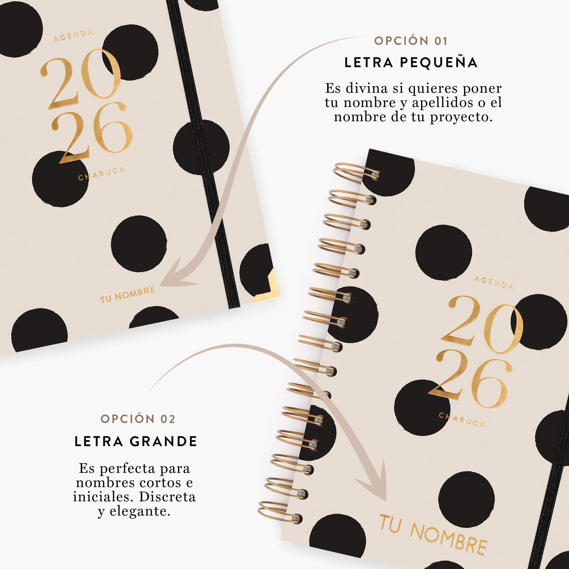 • BOLSA DE TELA. Para que tu agenda vaya siempre bien protegida.