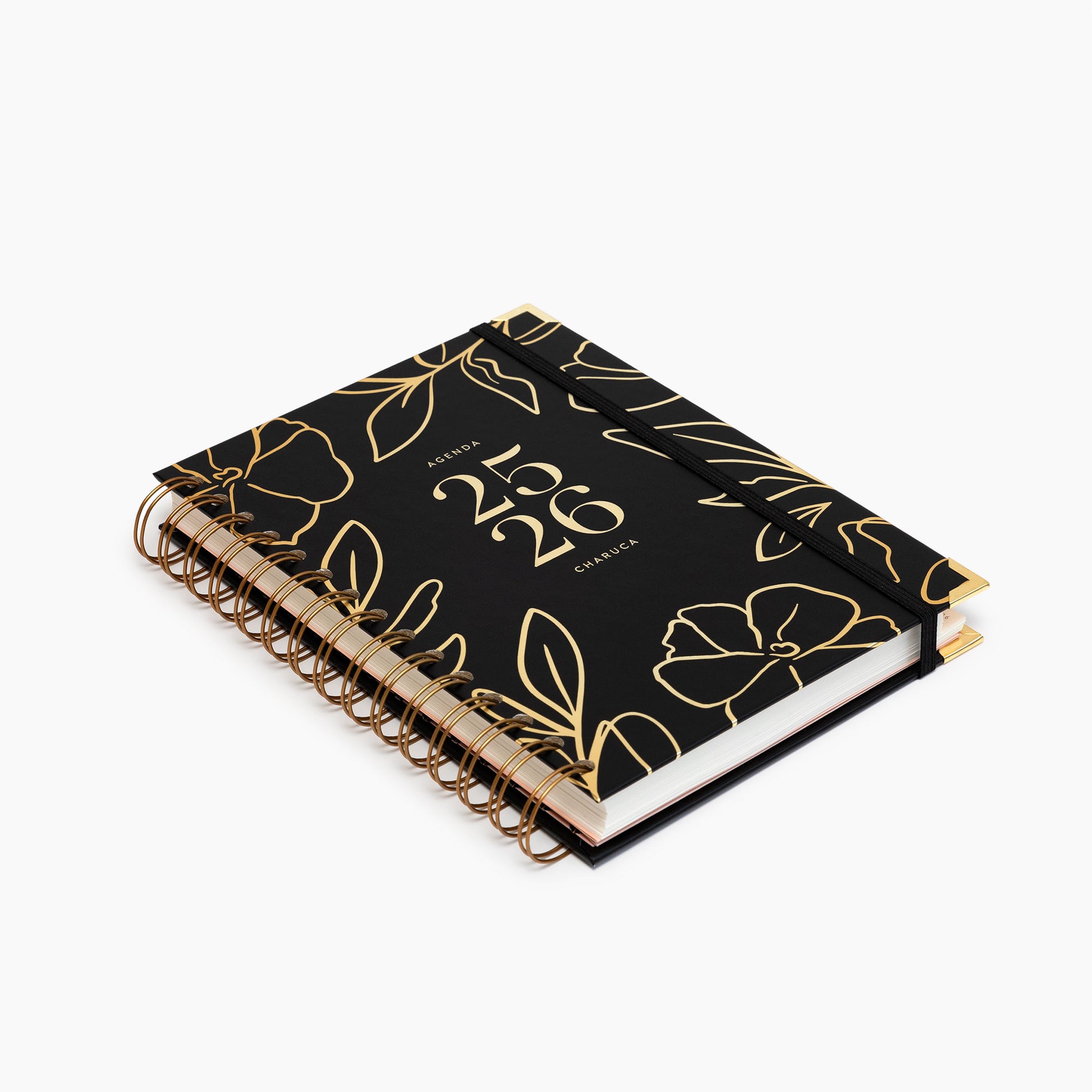 En Charuca tenemos un servicio de personalización artesanal. Escribe tu nombre o tus iniciales con letras doradas en la portada de tu papelería favorita. Puedes elegir entre dos tamaños de letra.