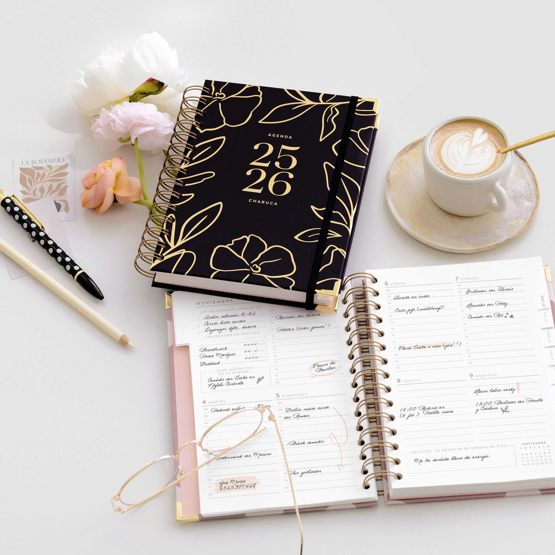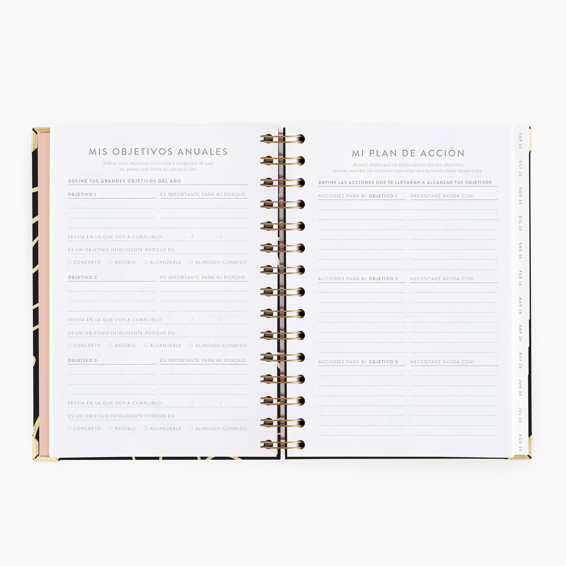 Esta agenda se va a convertir en tu mejor amiga y tu coach, porque te ayuda a organizarte, a mantenerte motivada y trabajar en tus objetivos con foco y constancia. Está hecha en España, con amor y sin prisas.