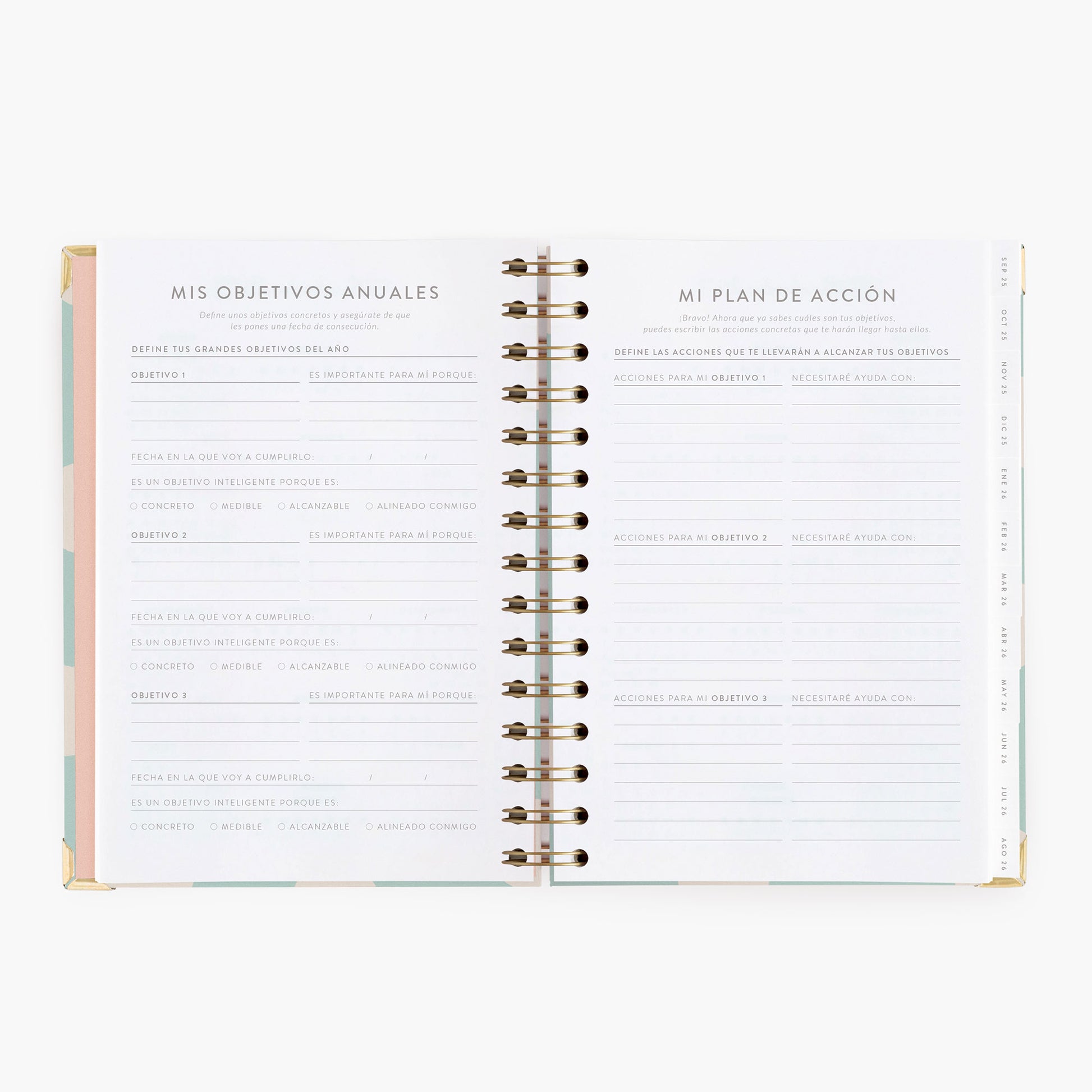 Esta agenda se va a convertir en tu mejor amiga y tu coach, porque te ayuda a organizarte, a mantenerte motivada y trabajar en tus objetivos con foco y constancia. Está hecha en España, con amor y sin prisas.