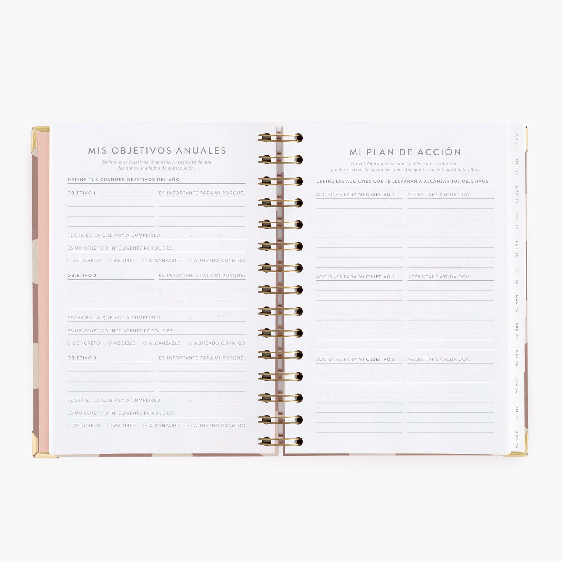 Esta agenda se va a convertir en tu mejor amiga y tu coach, porque te ayuda a organizarte, a mantenerte motivada y trabajar en tus objetivos con foco y constancia. Está hecha en España, con amor y sin prisas.