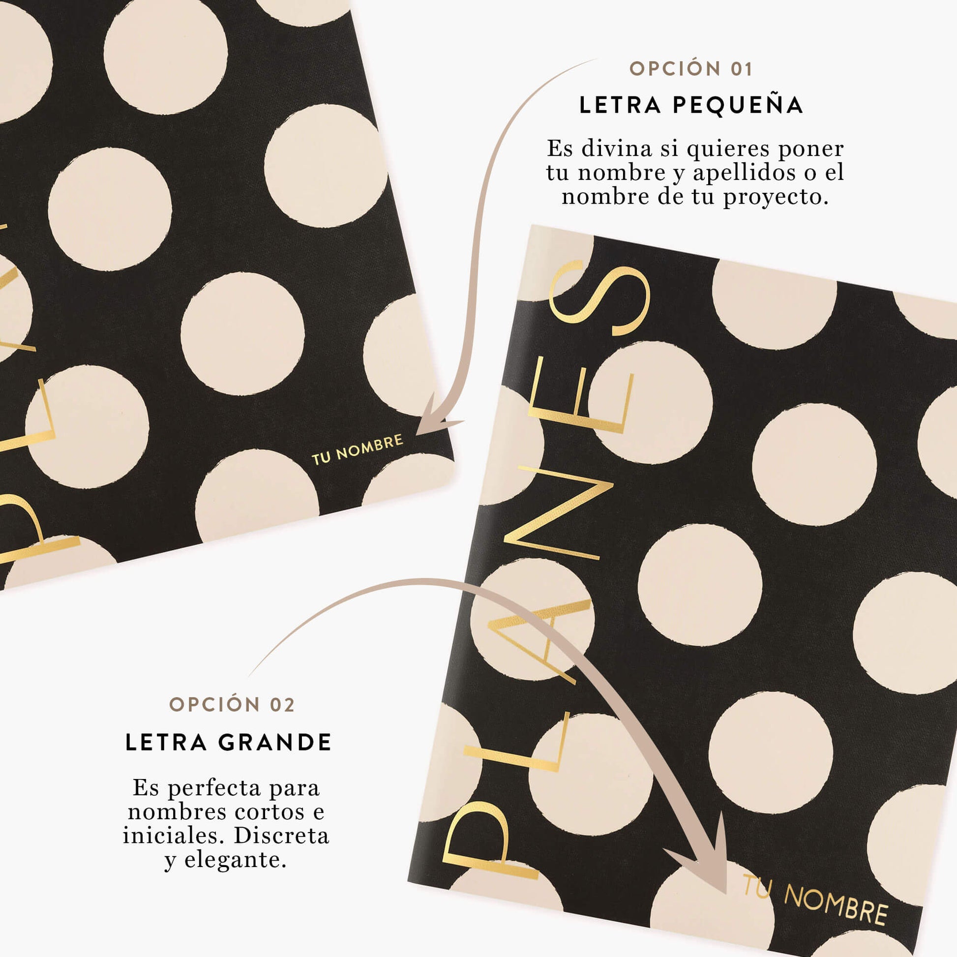 Podemos estampar tu nombre o tus iniciales con letras doradas en la portada.